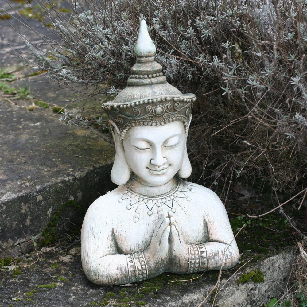 Décoration extérieure parfait pour votre jardin ou votre terrasse, il peut aussi être placer comme élément de décoration d’intérieur Cette statue Bouddha avec les mains jointes saura apporter une touche de calme et de décoration. Produit en résine possédant pour hauteur 50 cm et pour largeur et longueur environ 30 x 16 cm