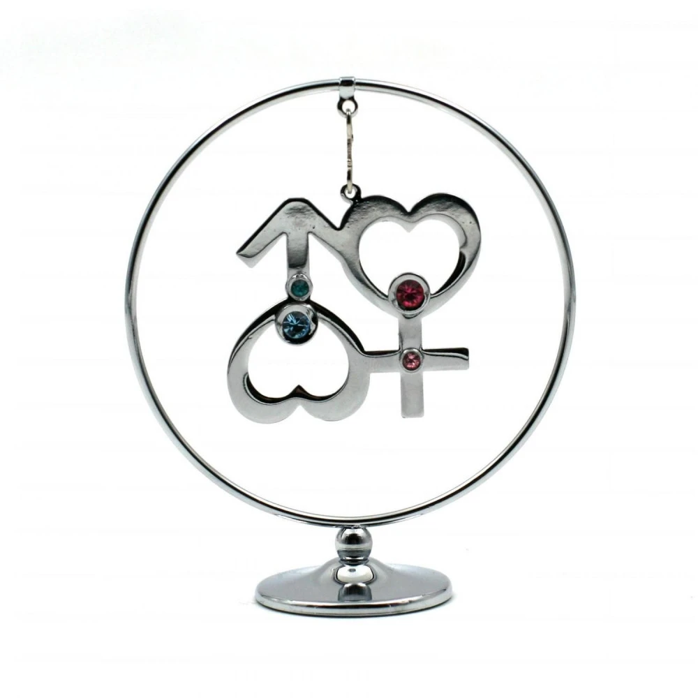 Bijou d’ornement en cercle avec les deux signes masculin et feminin accompagné de STRASS® Swarovski® rose et bleu.