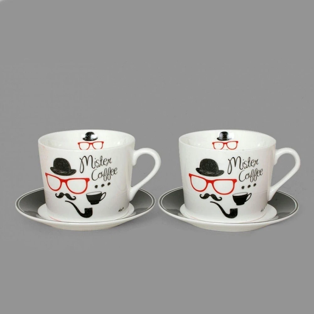 Set de 2 tasses + soucoupes Mister Coffee grand modèle en coffret cadeau.