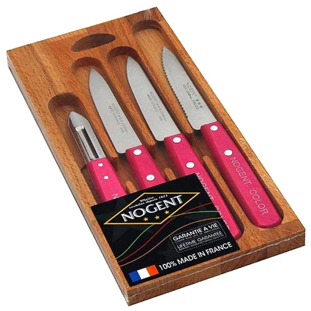 Coffret bois 4 pièces inox nogent color, manche lasuré rose, comprenant :