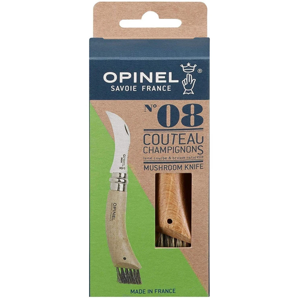 Couteau à champignon OPINEL, couteau à champignon avec virole tournante pour une plus grande sécurité, tout le savoir faire des couteaux OPINEL adapté à la cueillette champignon, lame en acier inox, manche en bois d’hêtre verni, brosse à poils de sanglier et livré dans sa boîte. De quoi faire plaisir à tout amoureux de la nature et de la cueillette des champignons !