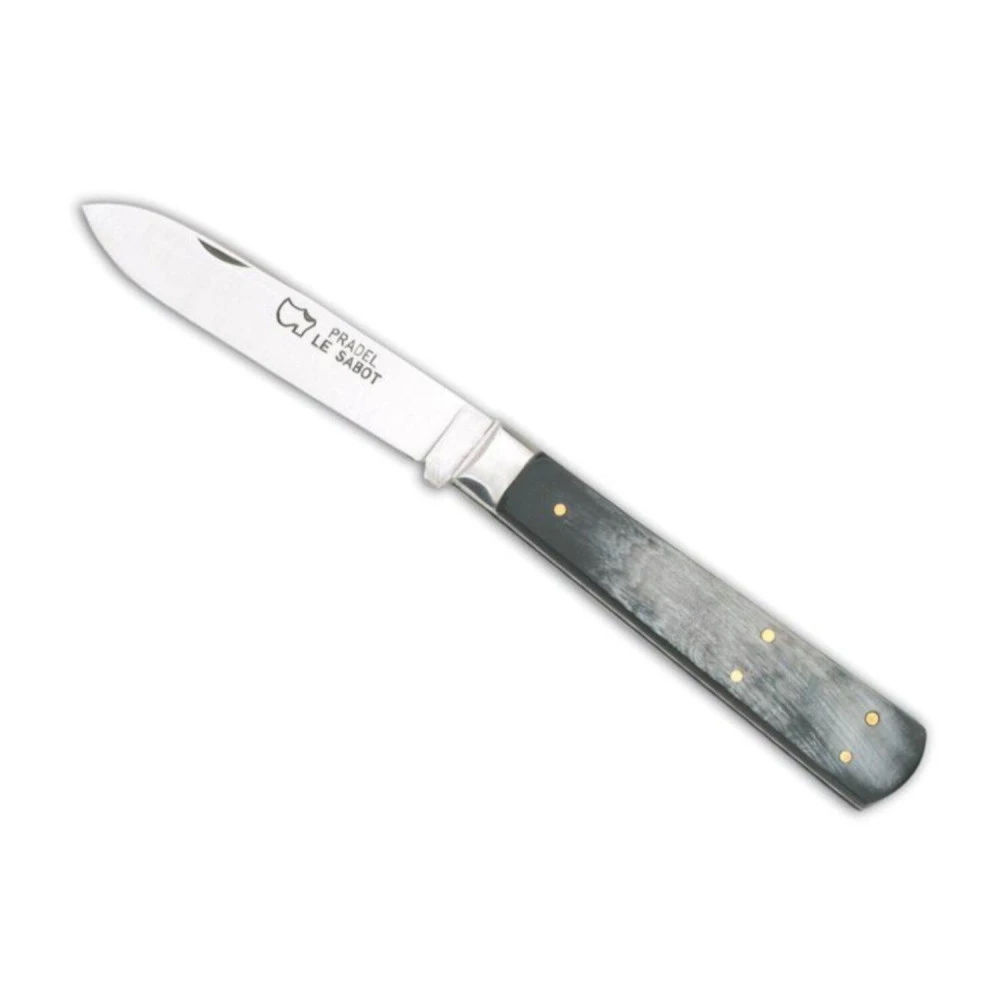 Ce couteau de marque LE SABOT « LE PRADEL », lame carbone XC 75, manche 10,5 cm corne, mitre acier.
