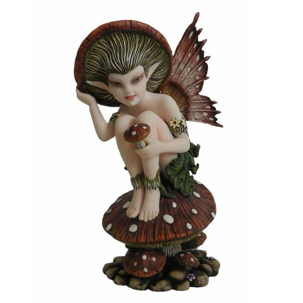 Sujet en résine de qualité représentant une fée pixie sur un champignon