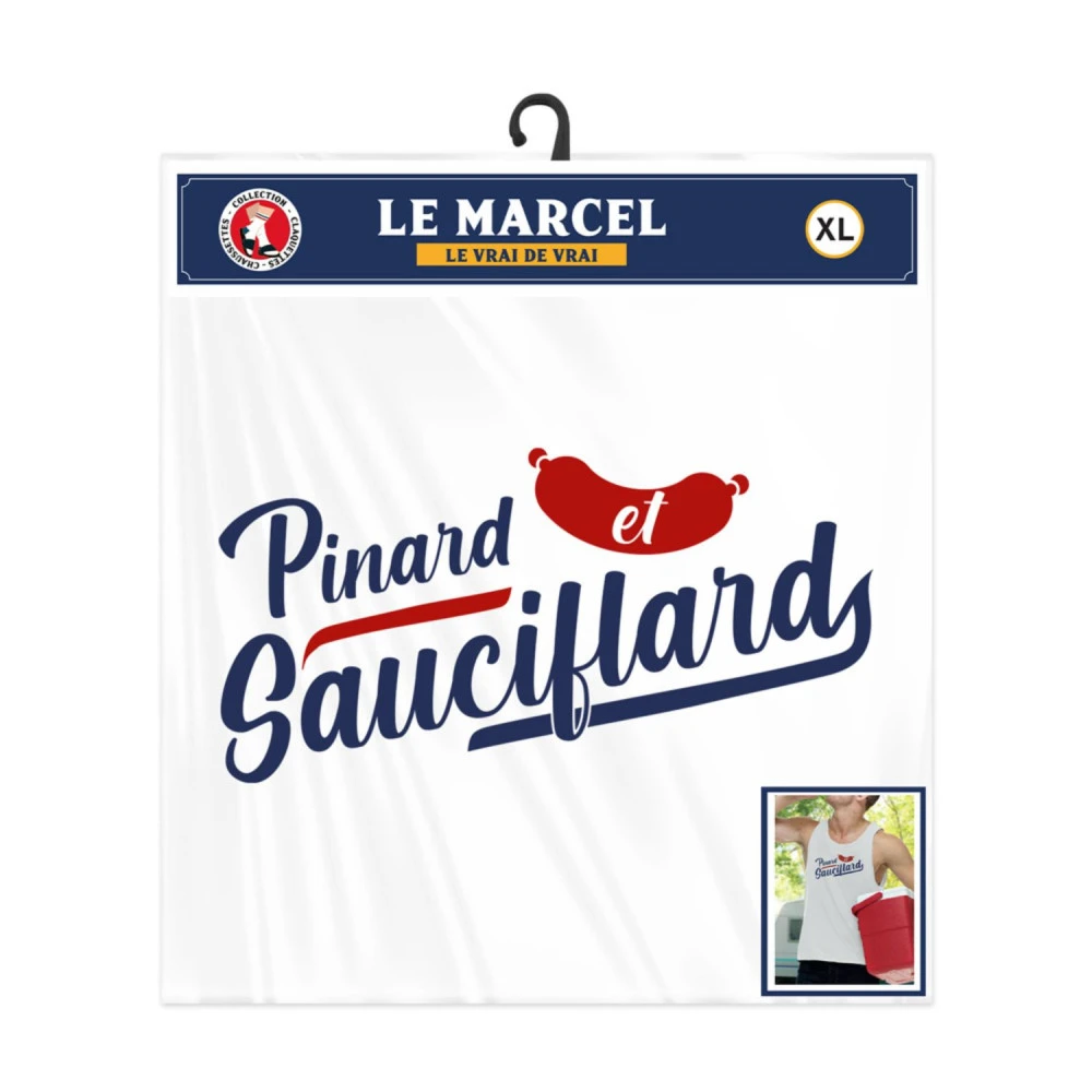 Offrez à vos amis ou à votre famille un cadeau humoristique inoubliable avec ce Marcel M « Pinard et Sauciflard » ! Confectionné en coton de qualité supérieure, ce marcel, sera parfait pour les amateurs d’humour et d’apéro. Avec sa mention humoristique « Pinard et Sauciflard » écrite en bleu, ce marcel sera un vêtement à la fois tendance et drôle.