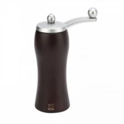Moulin à sel Saint Malo à manivelle en hêtre. Couleur chocolat de 14 cm.