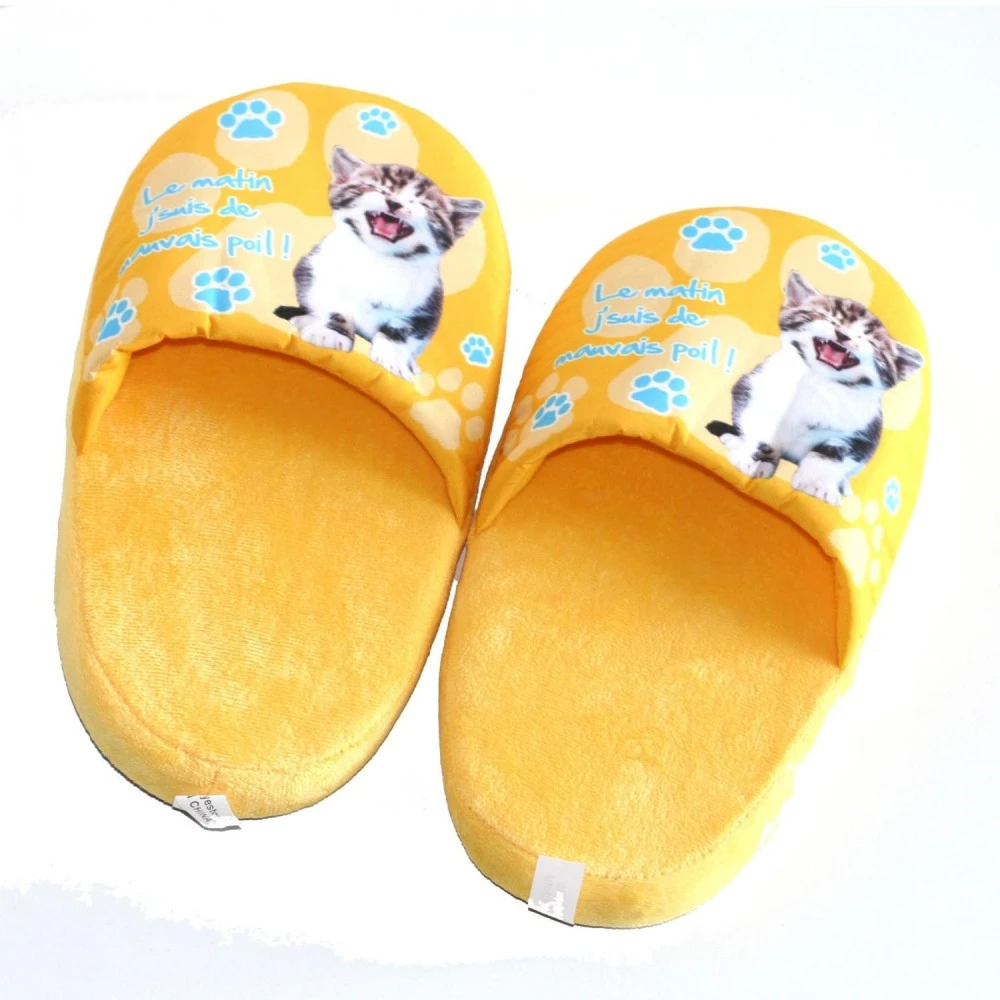 Pantoufles humoristiques taille unique avec inscription » Le matin j’suis mauvais poil «