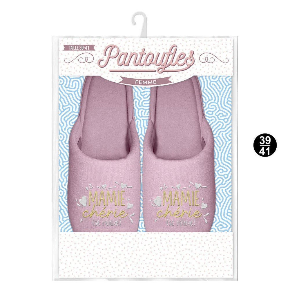 Chaussons Mamie Chérie (se relaxe), parfait pour offrir pour un anniversaire ou pour la Fête des Grands-Mères par exemple, taille 39 – 41