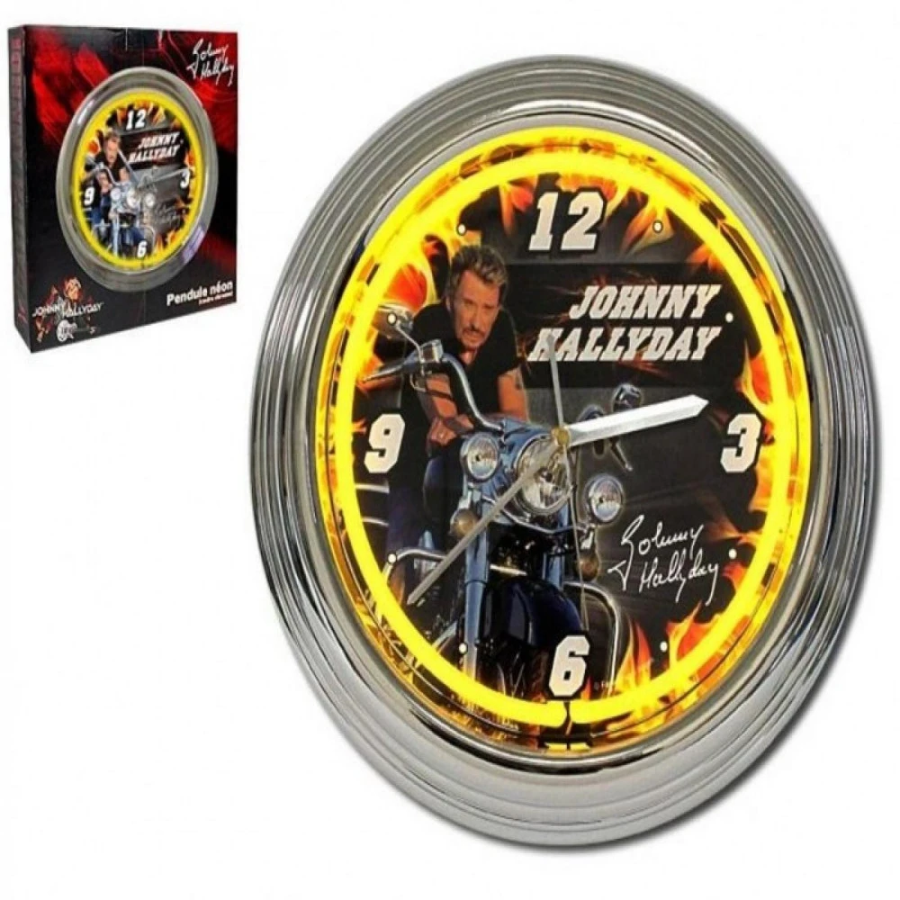 Magnifique pendule de la collection Johnny Hallydau avec éclairage par néon de couleur jaune. Alimentation du néon par transformateur fonctionnant sur 220 V.