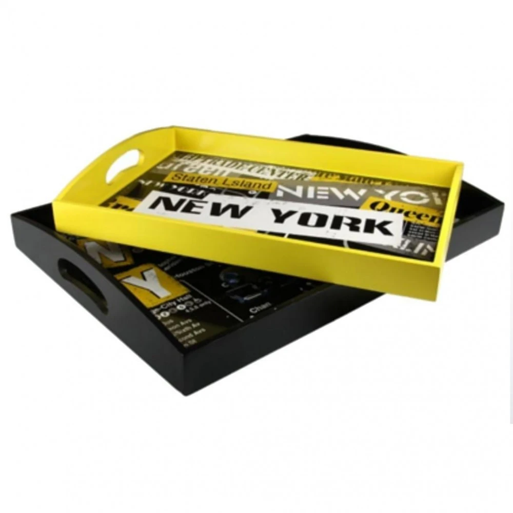 Ces deux plateaux en bois de petite et grande taille décorés aux couleurs de la ville de New York sont emboitable et de deux couleurs differentes.