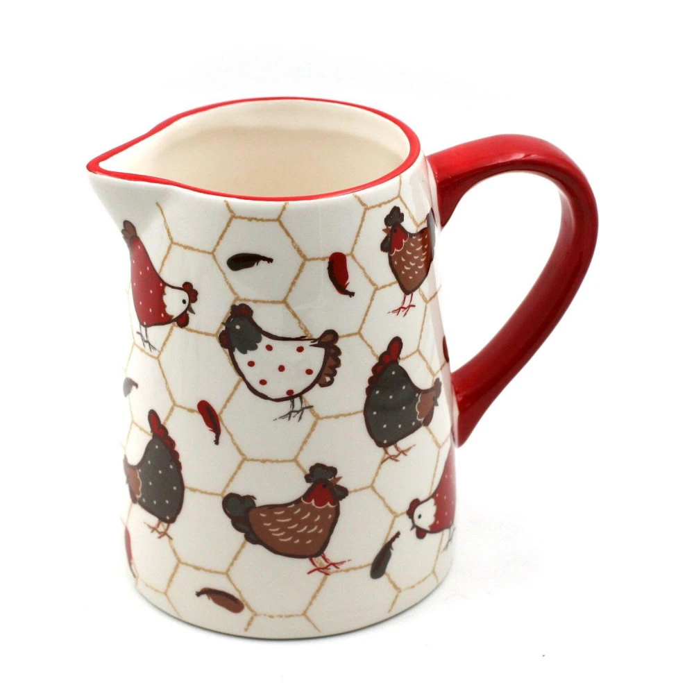 Joli pichet de table, parfait pour vos repas en famille ou entre amis. Avec des motifs de Poules dans les tons marron/rouge, cet accessoire de table de la collection Cotty sera parfait pour votre eau, votre vin ou encore vos autres boissons lors de repas. Dimensions, diamètre environ 8 cm sur 15 cm de hauteur, contenance 70 ml