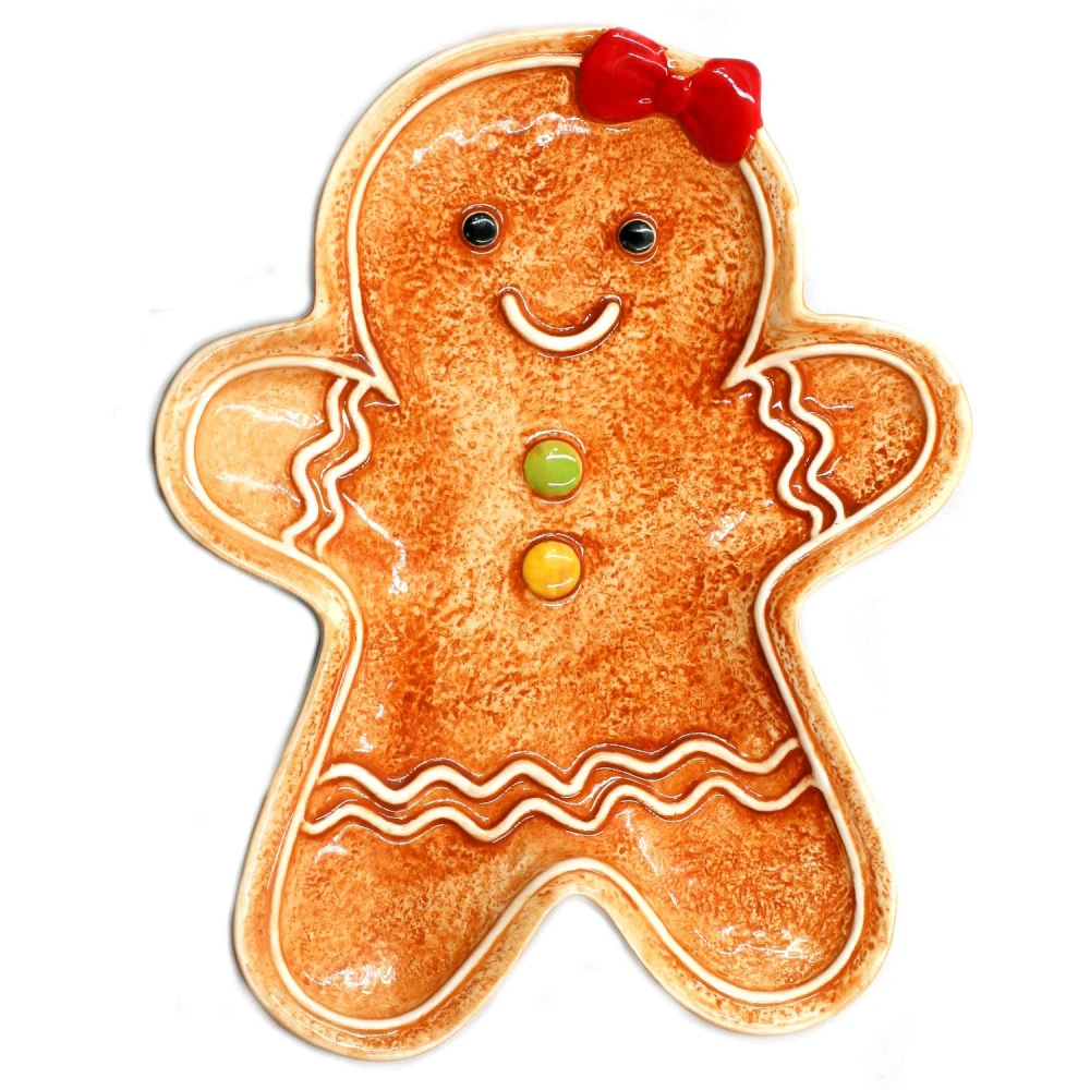 Plat pour friandises ou pour gâteaux salés en forme de biscuit Mannele. Environ 18 x 24 cm avec une profondeur de 2 cm, en céramique