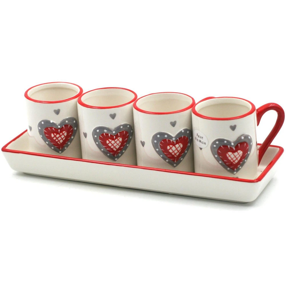 Plateau avec 4 Tasses Expresso motif Coeur
