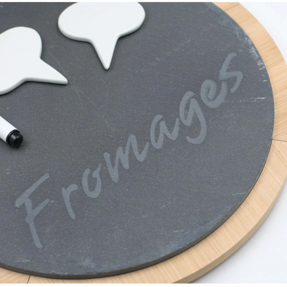 Le support ardoise est élégant et simple à nettoyer, la base en bois est chaleureuse et les petites pancartes apporteront originalité à votre présentation.