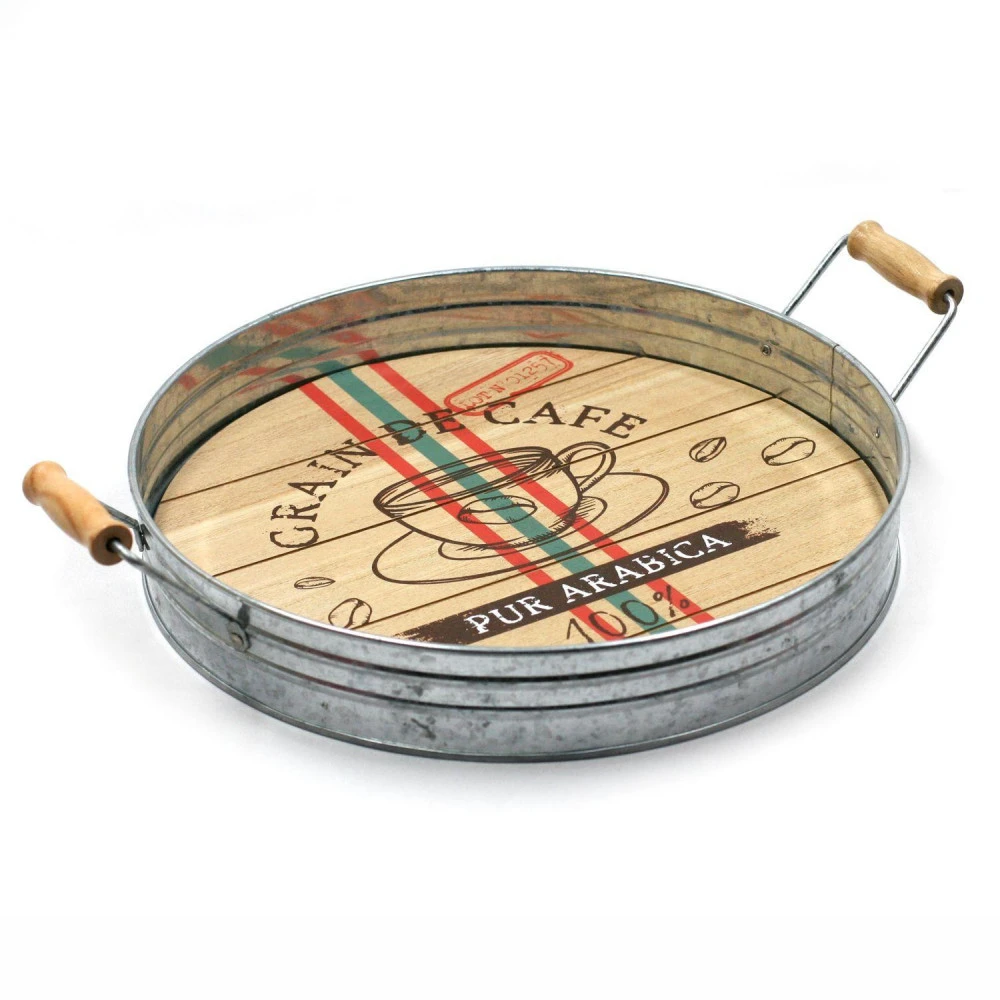 Plateau Rond En Métal Avec Poignées – Café Arabica