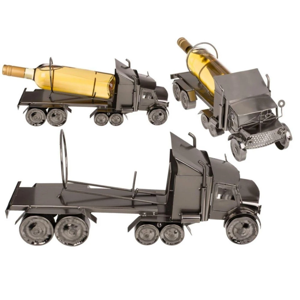 Ce Support Bouteille métallique en forme de Camion de Routier pourrait faire un très bel objet de décoration ou même un cadeau à offrir, ce produit peut apporter du charme à votre table lors des repas. Les dimensions sont d’environ 43 x 19 cm.