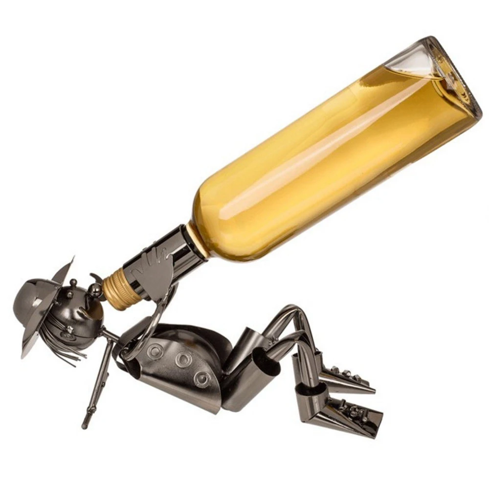 Porte bouteille en métal, le Buveur allongé. Une façon originale de présenter vos bouteilles, il peut faire l’objet d’un cadeau à un proche. Dimensions 28 x 13 x 16 cm