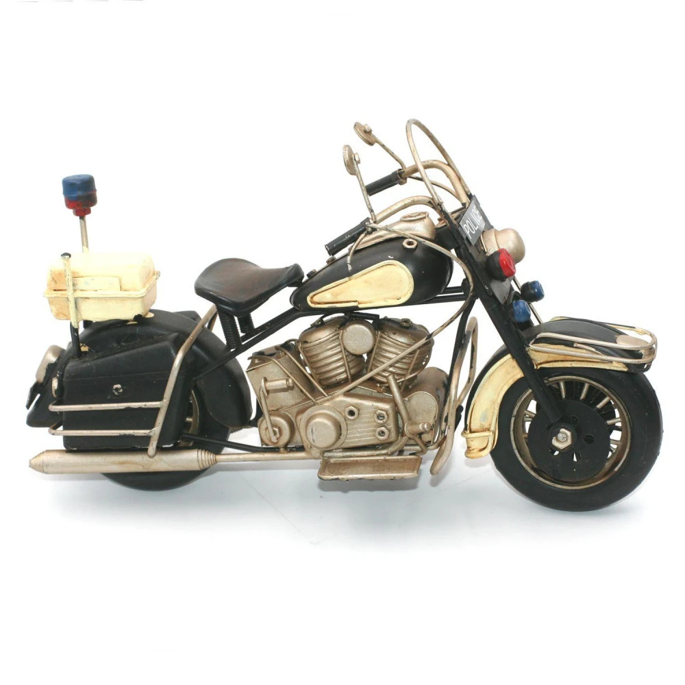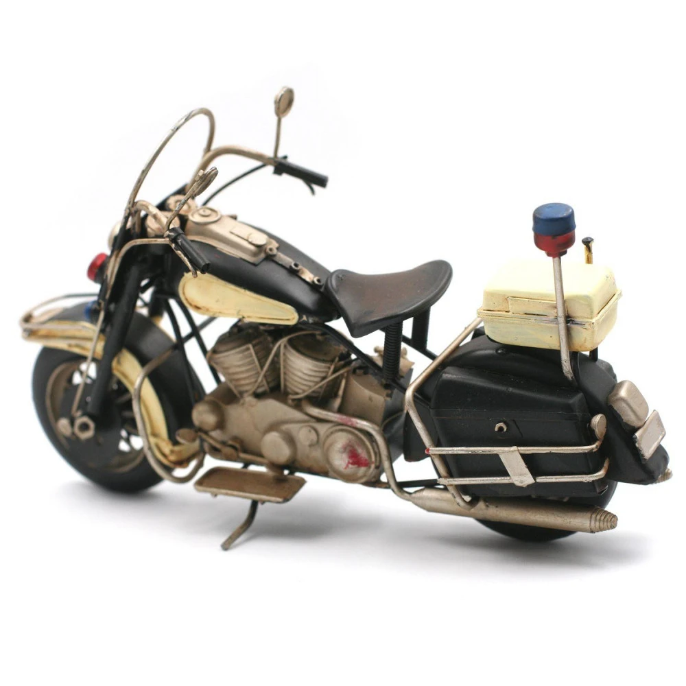 Réplique 100% métal d’une moto de Police avec effet vintage. Objet purement déco pour les inconditionnels de miniature moto.