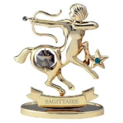 Bijou d’ornement représentant le signe du zodiaque Sagittaire couleur plaqué or, orné de cristaux de Swarovski.