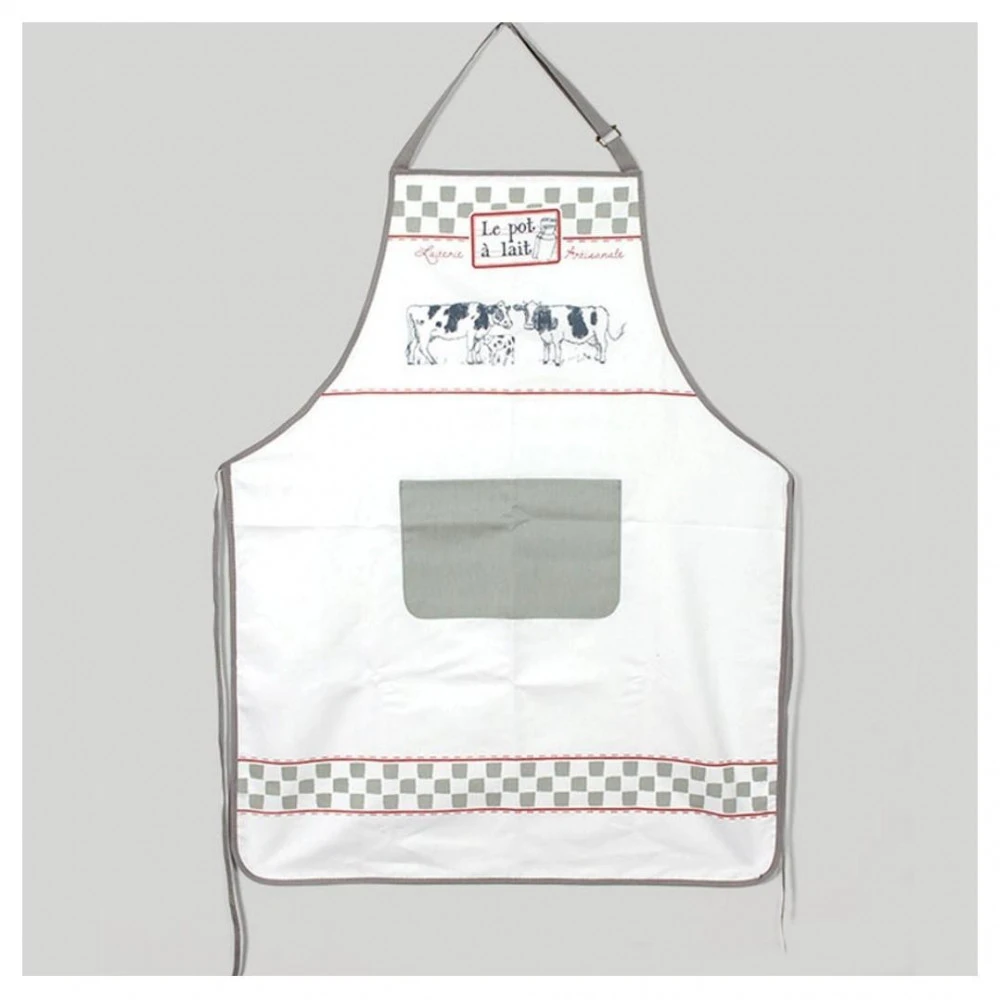 Ce tablier de cuisine de la collection « Milk » d’une dimension de 70×90 cm est illustré d’un paysage comportant des vaches…Composition 70% coton, 30% Polyester