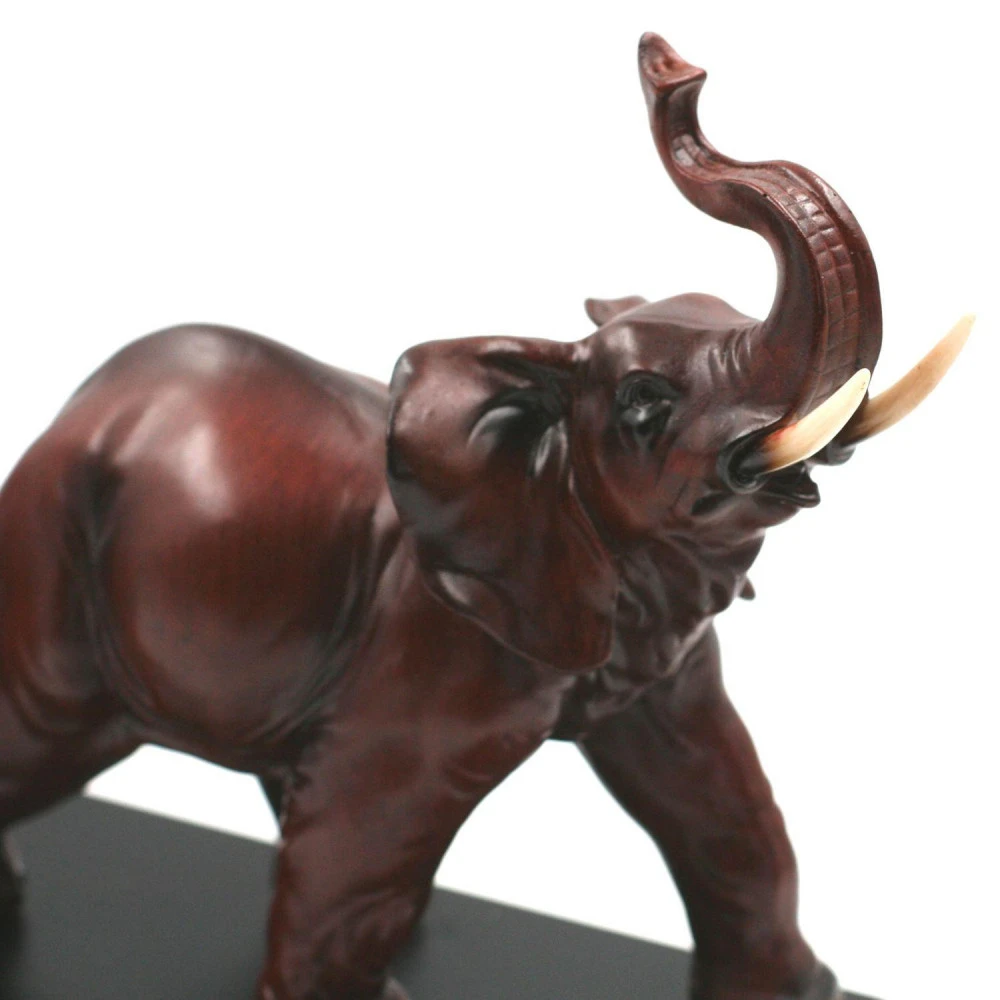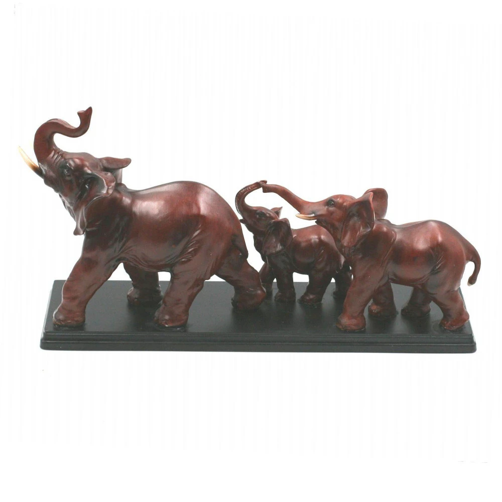 Sujet décoratif en résine représentant une famille de trois éléphants en déplacement.