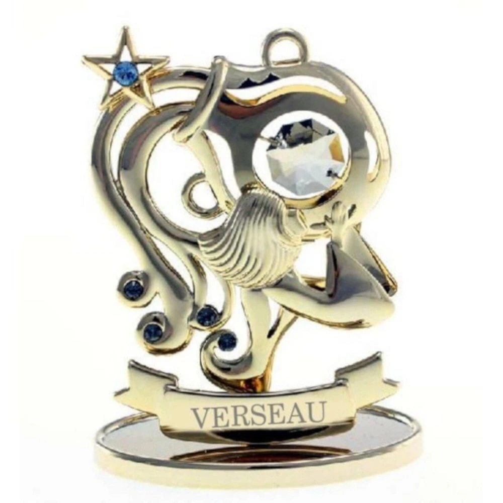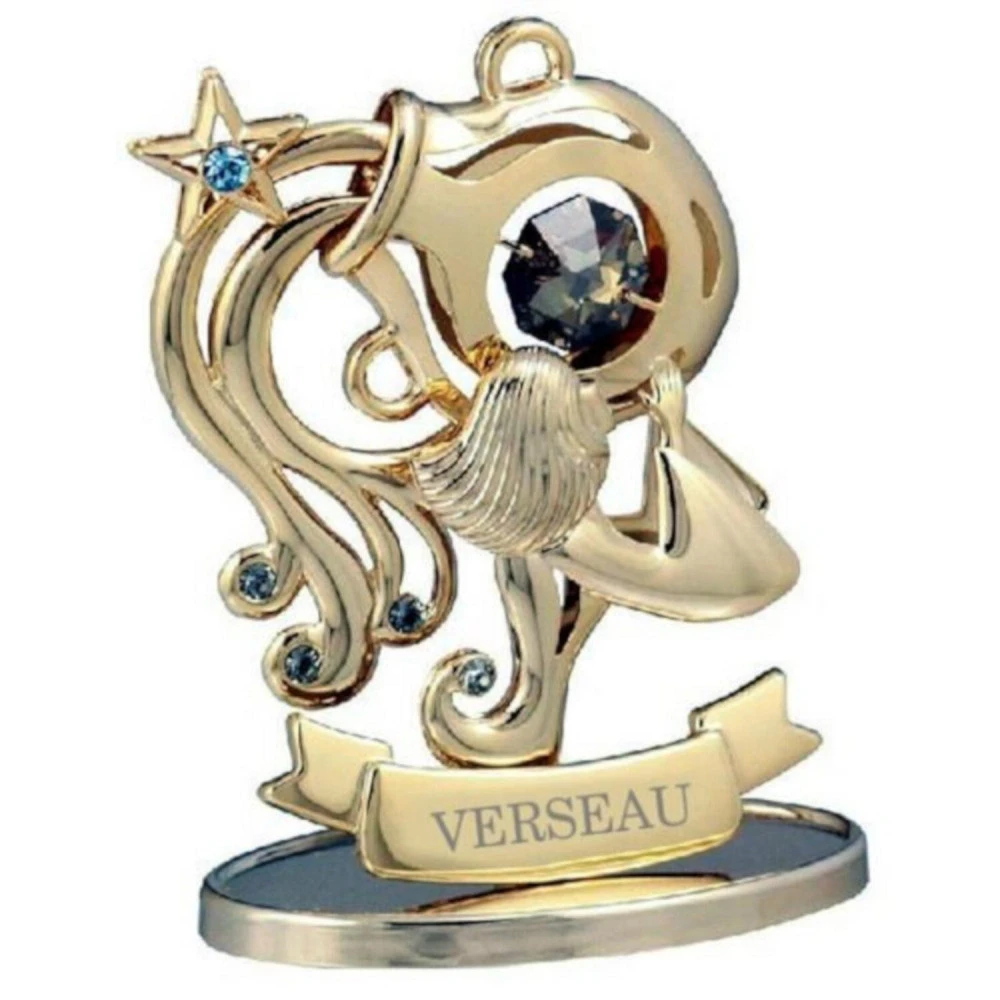 Bijou d’ornement représentant le signe du zodiaque Vierge couleur plaqué or, orné de cristaux de Swarovski.