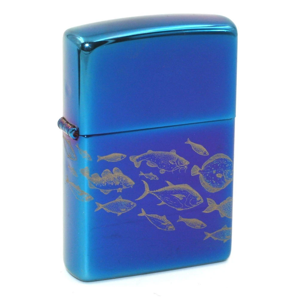 Ce Zippo possède un fond réfléchissant dans les tons bleu et violet, avec un magnifique dessin d’un banc de différents poissons en blanc avec des merveilleux détails, tout le long du briquet. Les briquets Zippo sont réputés pour être résistants et fonctionnels. Ils sont garantis à Vie ! Fabriqué aux États-Unis, il est recommandé d’utiliser des pierres et de l’essence de la marque Zippo pour une utilisation du briquet optimale